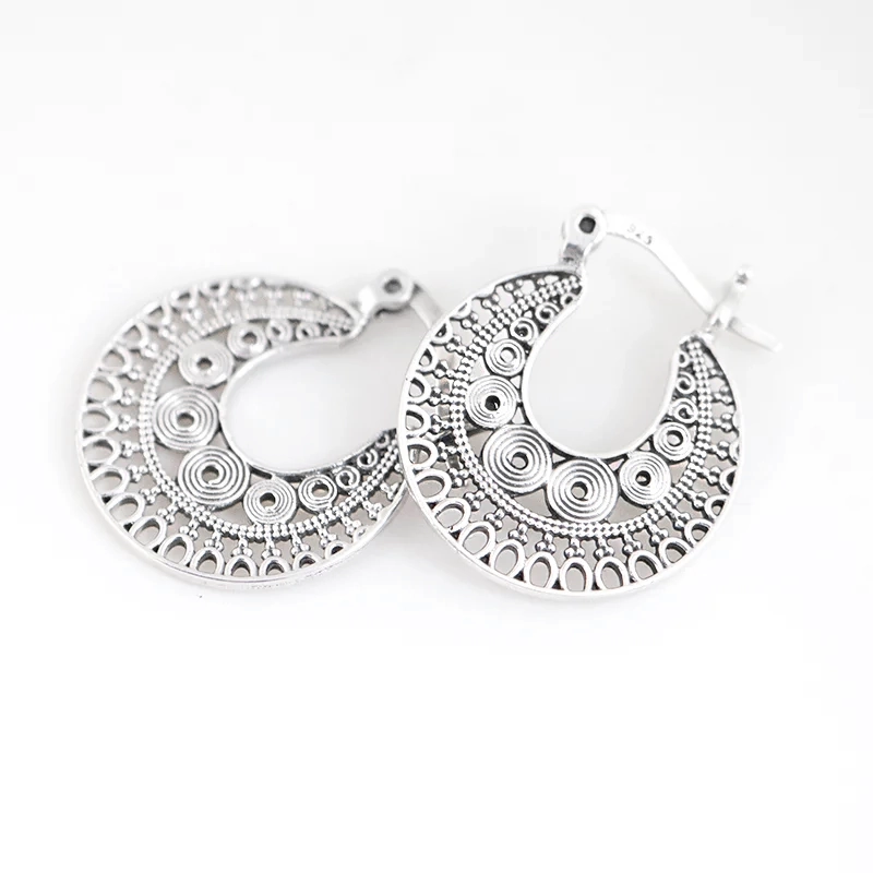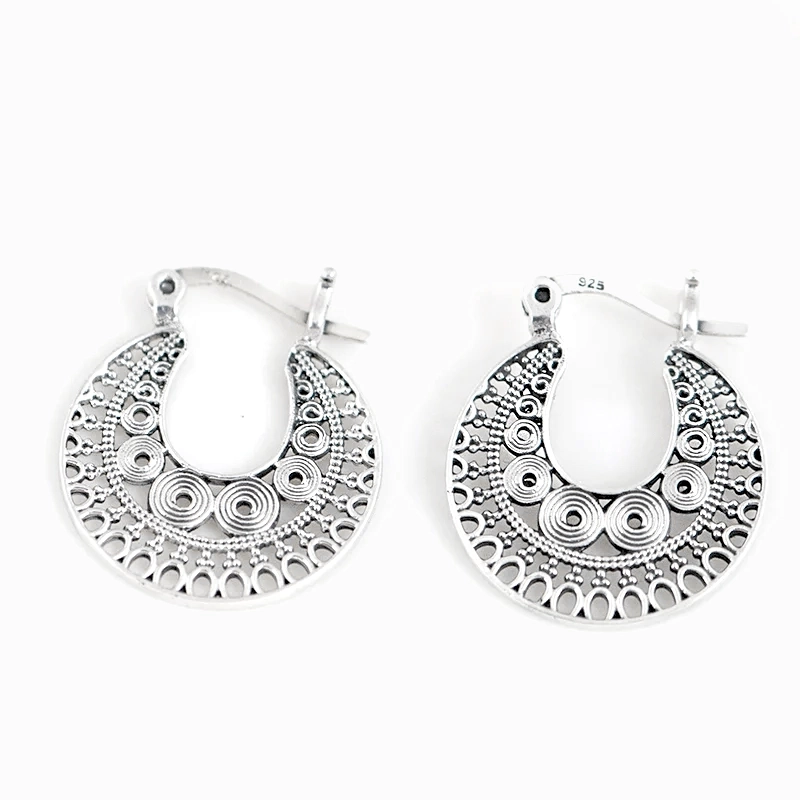 Deze stevige zilveren Bali oorringen zijn vervaardigd uit 925 Sterling zilver en uitgevoerd in een plat model met filigrain bewerking. De subtiele details in het zilver geven de oorringen een karaktervolle uitstraling.