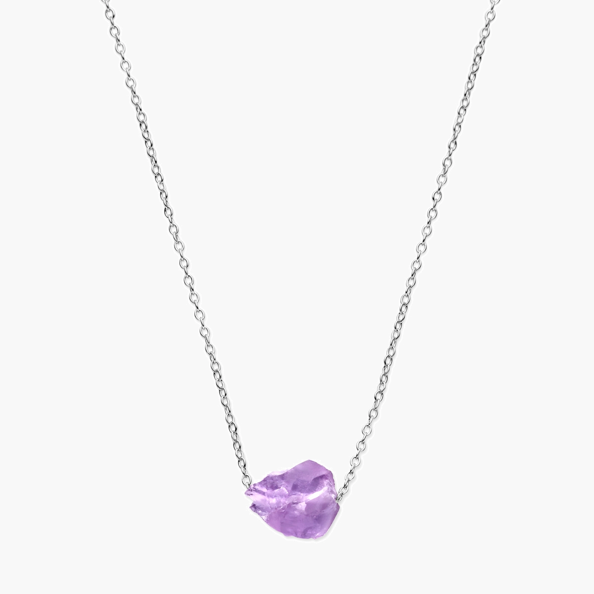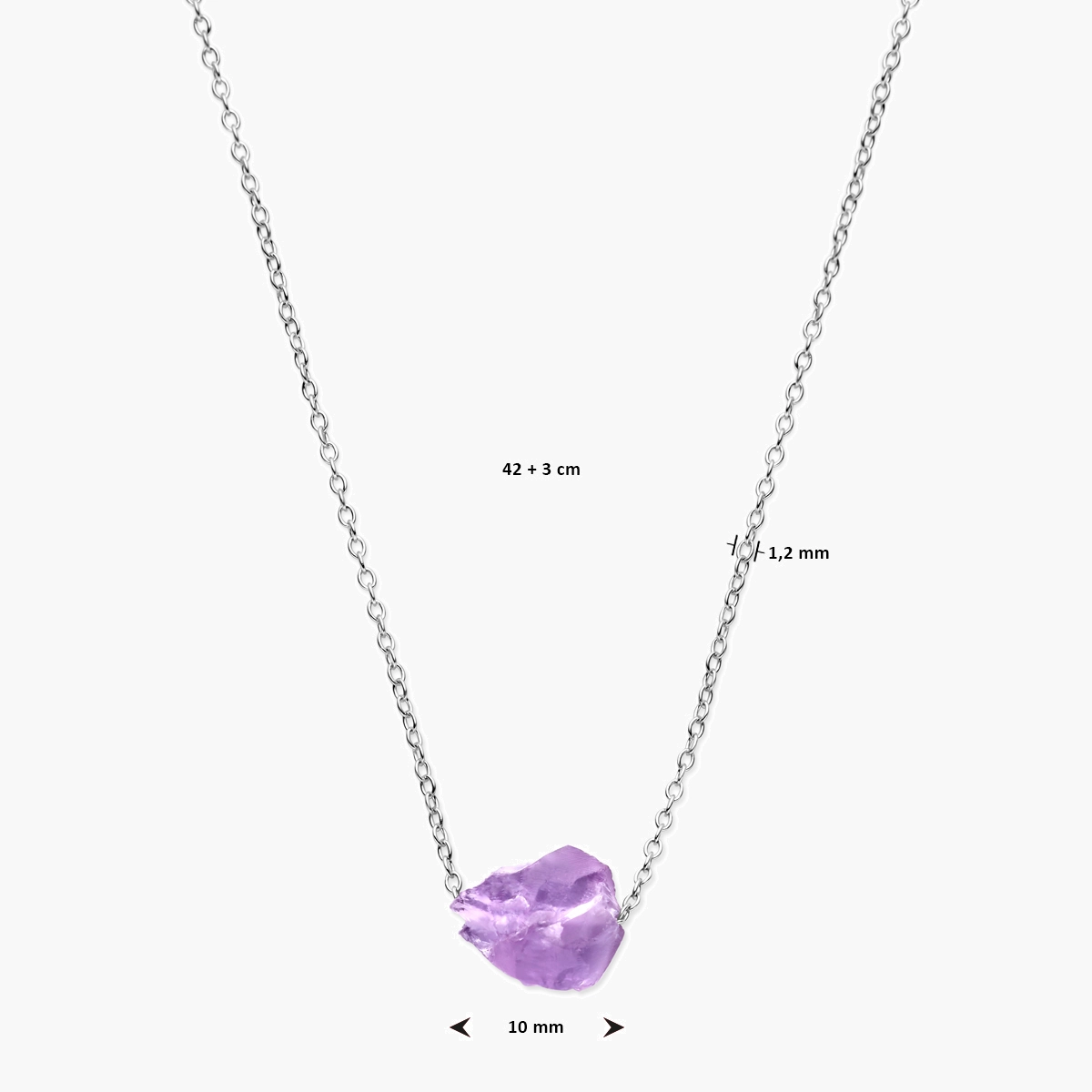 Deze gerhodineerde 925 zilveren ketting combineert een subtiele schakel met de krachtige, natuurlijke uitstraling van ruwe amethist. De steen van ca. 10 mm is onbewerkt gelaten, waardoor elke ketting een unieke uitstraling heeft.