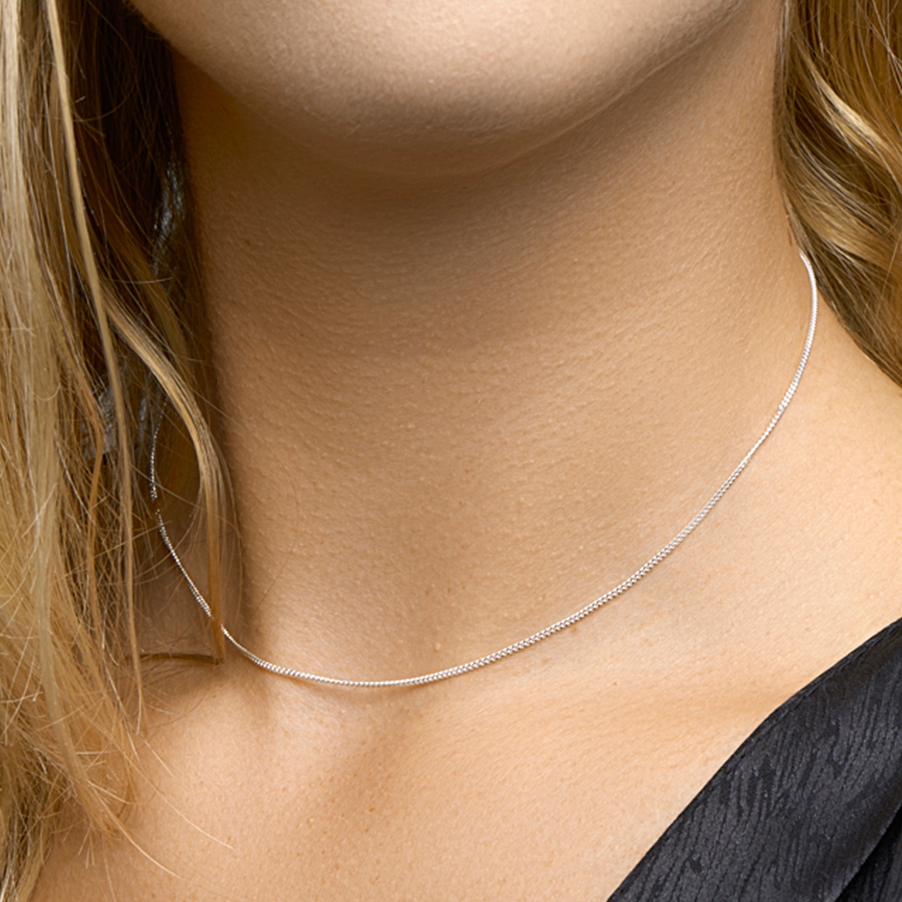 Deze fijne zilveren ketting met gourmet schakel is een tijdloze basic die moeiteloos combineert met elke stijl. De schakel heeft een ideale breedte van 1,2 mm, wat zorgt voor een subtiele uitstraling, zonder in te leveren op stevigheid.