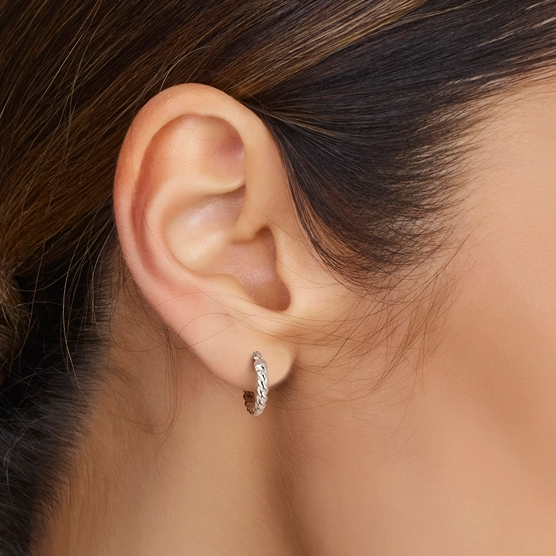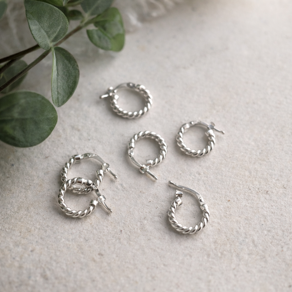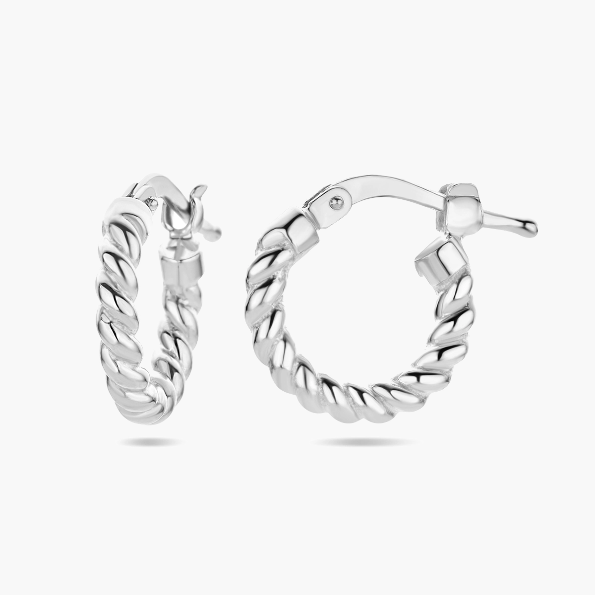 Deze kleine oorringen zijn gemaakt van gerhodineerd 925 Sterling zilver en uitgevoerd met een gedraaid design. De compacte maat maakt ze perfect voor dagelijks gebruik, terwijl de subtiele twist zorgt voor een speelse uitstraling.