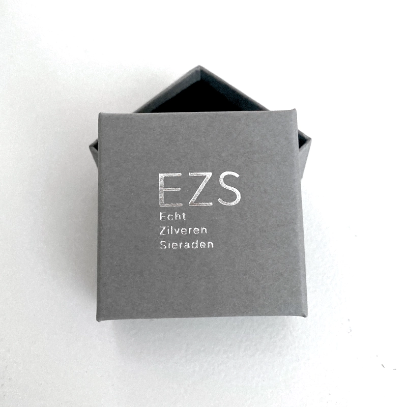Dit kleine sieradendoosje is een stijlvolle en veilige manier om jouw sieraden te bewaren of cadeau te geven. Het doosje is gemaakt van stevig grijs karton en is aan de binnenkant voorzien van een zachte zwarte foam-inlay, zodat sieraden goed op hun plek blijven en optimaal beschermd zijn tegen krassen of beschadigingen.