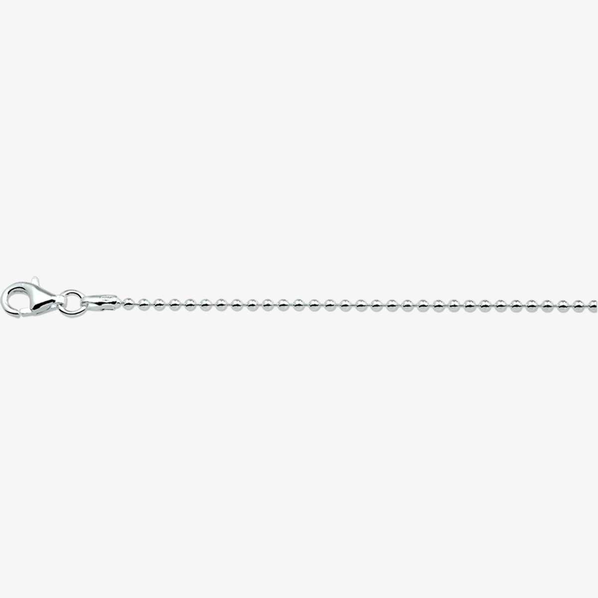 Deze zilveren bolletjes ketting van 2 mm is een stijlvolle basic met een speelse touch. De ketting bestaat uit kleine, geschakeerde bolletjes van 2 mm dik, en is licht glanzend.