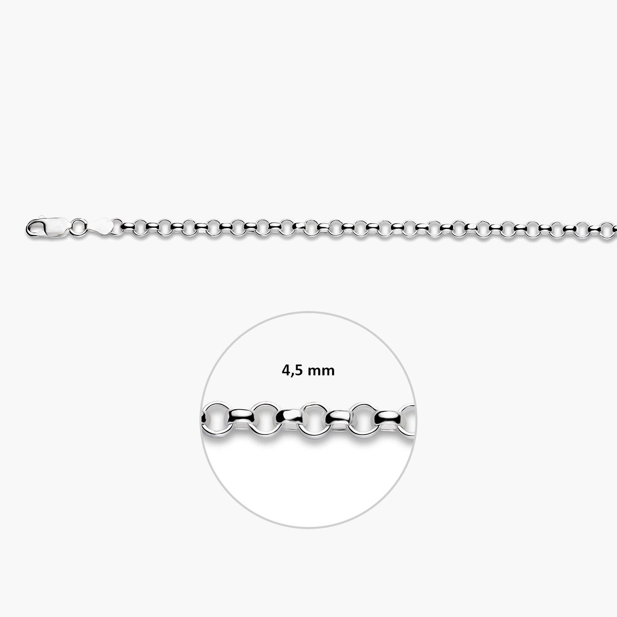 Deze zilveren armband met jasseron schakel is een tijdloze en luxe basic die je elke dag kunt dragen. De ronde schakels van 4,5 mm geven de armband een rustige uitstraling die moeiteloos combineert met andere sieraden.
