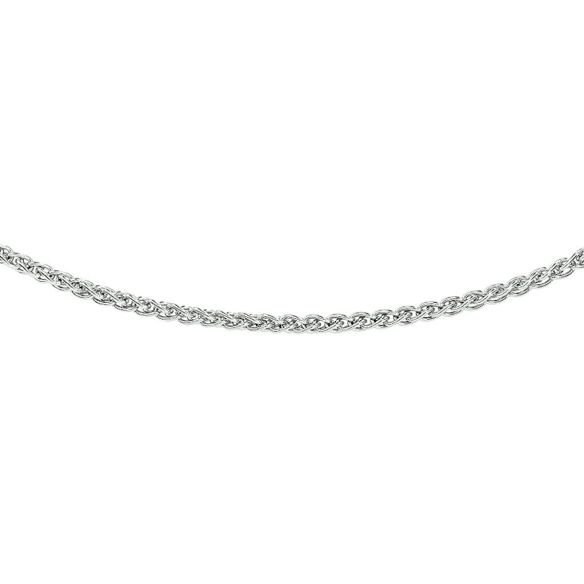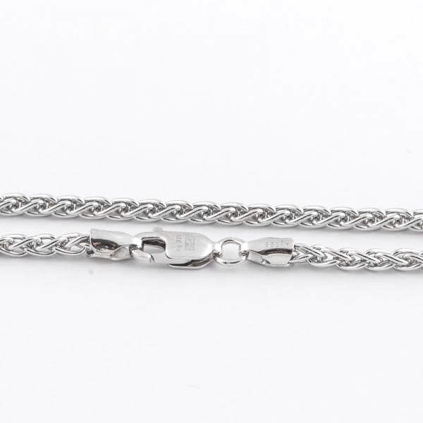 Mooie, stevige gevlochten ketting met vossestaart schakel. Valt soepel en is gemaakt van gerhodineerd Sterling zilver. Gerhodineerd zilver is extra sterk en heeft een wat donkerdere dan normaal wit zilver. Poetsen is niet nodig, de ketting blijft mooi.