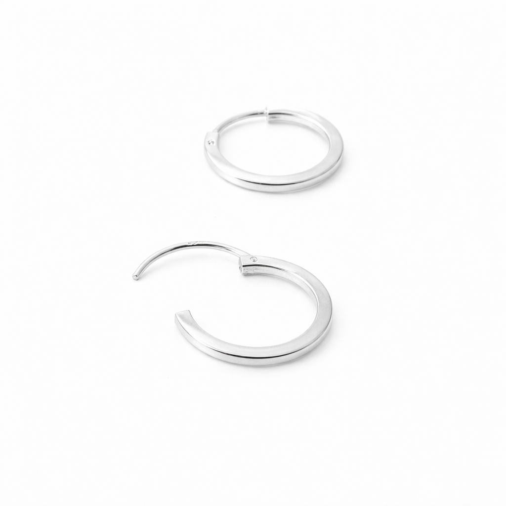 Gemaakt van Sterling zilver (925), dat hypoallergeen en nikkelvrij is – ook geschikt voor gevoelige oren. De stevige scharnierende sluiting zorgt voor makkelijk in en uit doen.